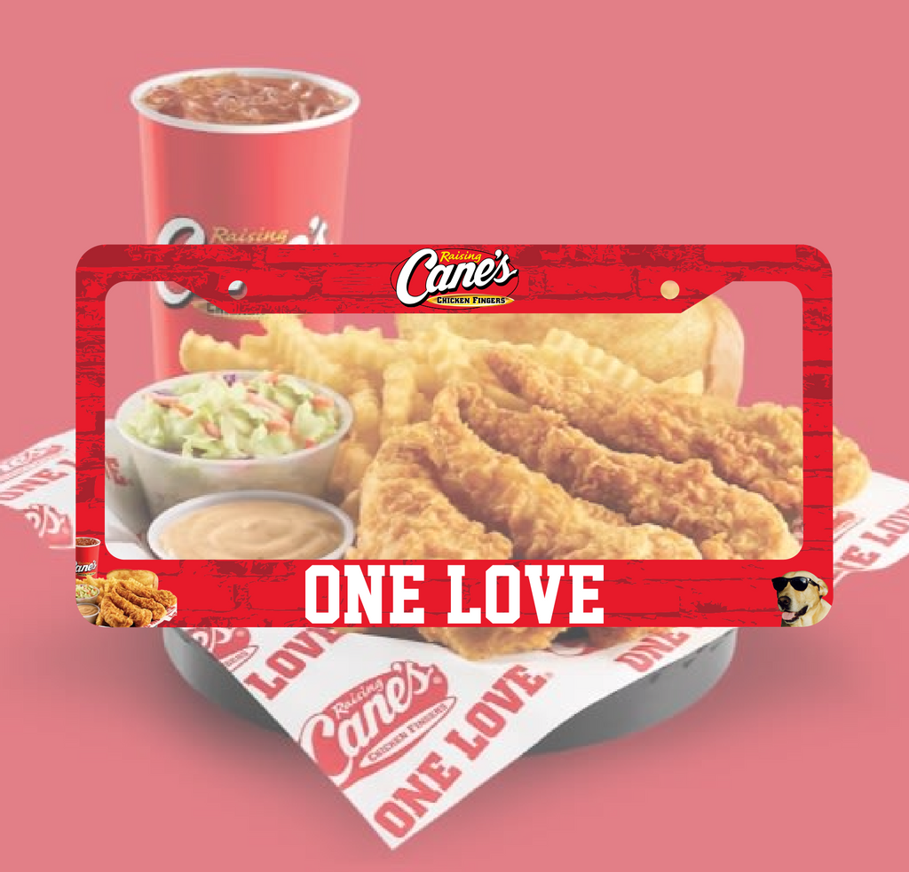 Custom Raising Cane's license plate frame, designed for 12x6 US-based license plate frames.